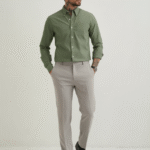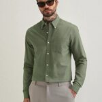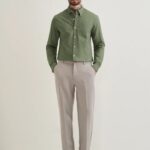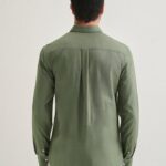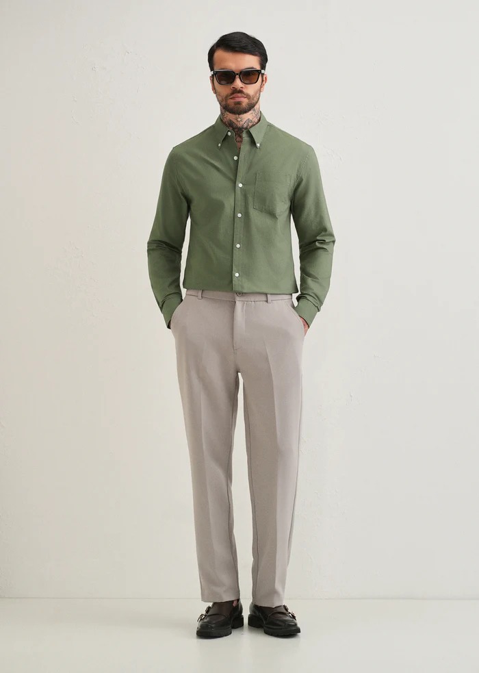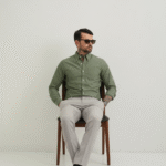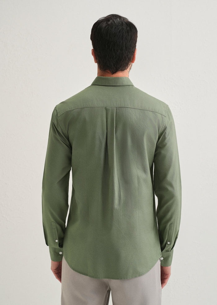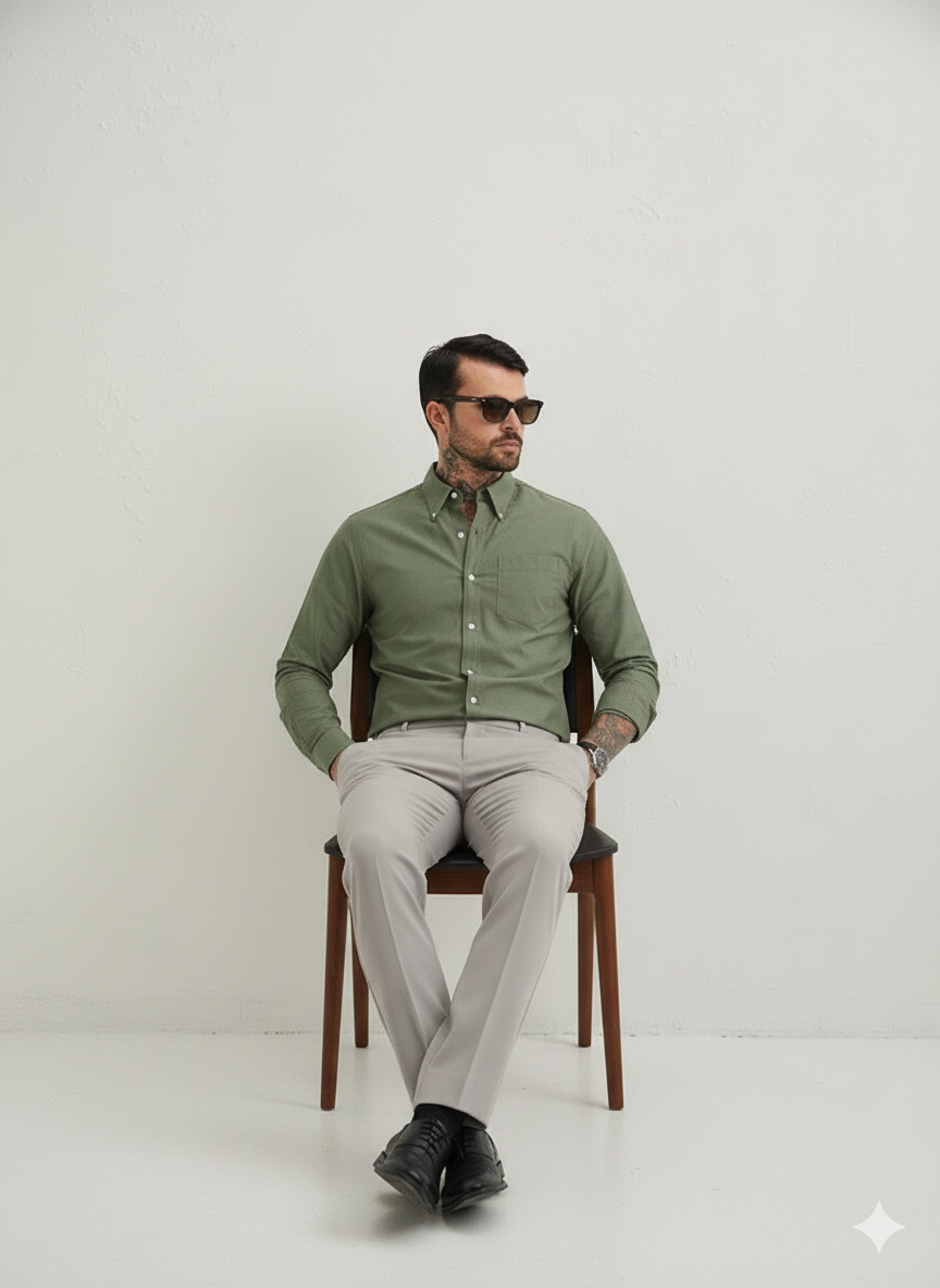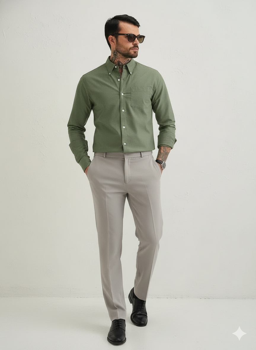 Crafted from high-quality breathable cotton fabric, this shirt ensures all-day comfort while maintaining a sharp silhouette. The olive green color adds a touch of sophistication and earthy elegance, making it an excellent choice for both casual outings and smart-casual settings. Its slim-fit tailoring enhances the body shape without restricting movement, offering a contemporary and confident appearance.