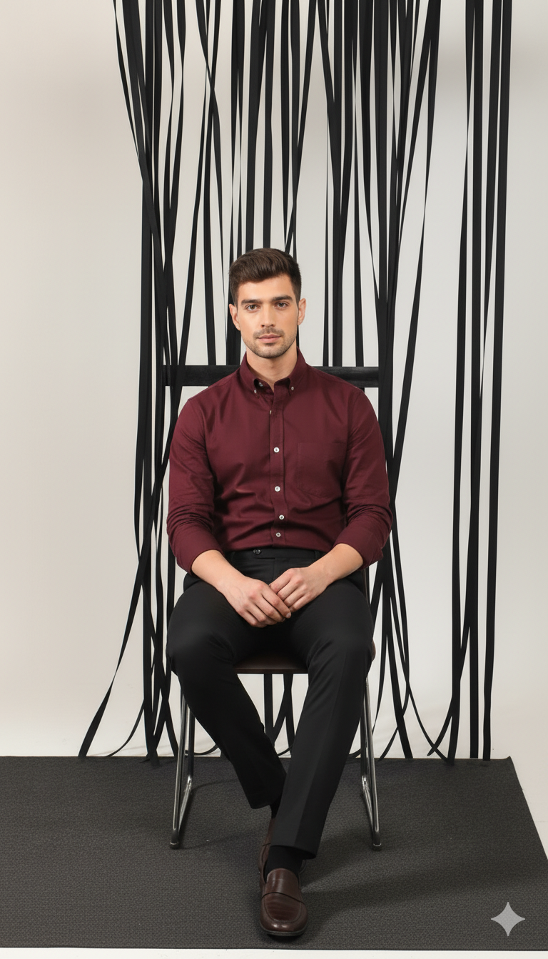 The shirt features a tailored slim-fit silhouette that enhances your body shape without feeling restrictive. Its full-sleeve design, button-down front, and neatly structured collar make it a versatile choice for both casual and semi-formal occasions. The rich Wine Maroon color adds a sophisticated and premium look, perfect for office wear, evening outings, or smart casual events.