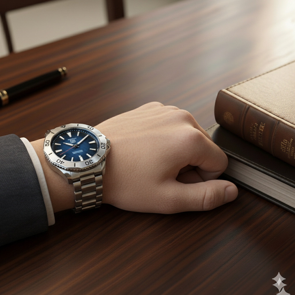 The rotating bezel with a brushed metal finish not only enhances style but also adds functionality. Engraved minute markers on the bezel give the watch a professional diver-style appearance, symbolizing adventure and confidence.