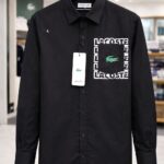 Lacoste Men’s Black Signature Logo Cotton Shirt | Slim Fit | Premium Casual & Formal Wear