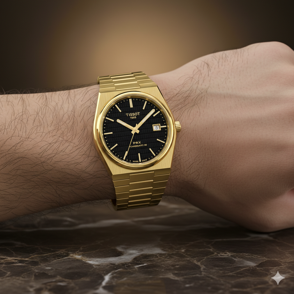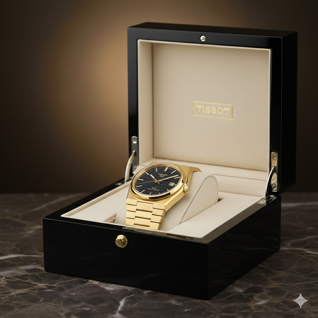 Tissot Luxury Gold Bracelet Watch Royal Black Dial Premium Timepiece