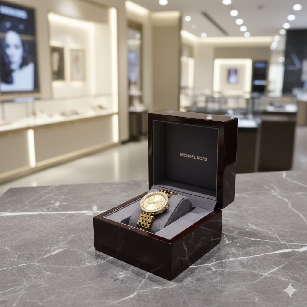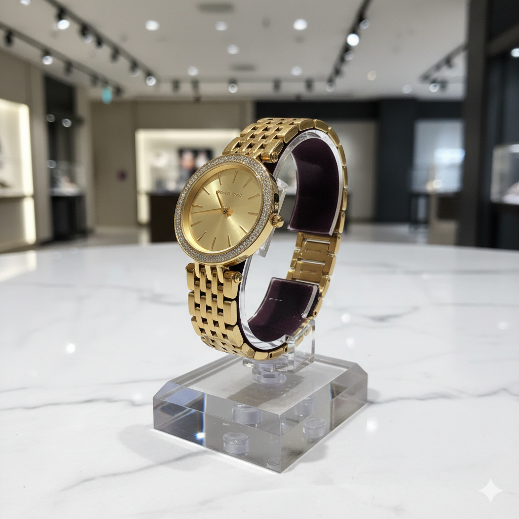 Michael Kors Gold-Tone Crystal Bezel Bracelet Watch – Elegant Luxury Timepiece
