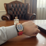 This Richard Mille luxury skeleton wristwatch is a bold expression of modern horology and high-end design. Crafted with a distinctive tonneau-shaped case, the watch immediately stands out with its futuristic architecture and refined detailing. The exposed skeleton dial reveals the intricate inner mechanics, allowing a clear view of the precision-engineered movement that powers the timepiece. Every component is thoughtfully arranged, reflecting exceptional craftsmanship and technical sophistication.