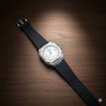 The black textured rubber strap provides exceptional comfort and flexibility, making it ideal for long hours of wear. Designed to sit securely on the wrist, the strap complements the sporty yet premium character of the watch, whether worn at work, during travel, or for casual outings.