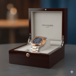 The deep blue textured dial is meticulously crafted, offering exceptional depth and visual richness. Luminous rose-gold hour markers and hands ensure excellent readability while enhancing the watch’s premium aesthetic. A finely detailed chronograph sub-dial adds both functionality and visual balance, reflecting the watch’s high-performance engineering. The date window positioned discreetly on the dial provides added practicality for everyday wear.