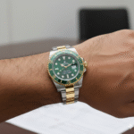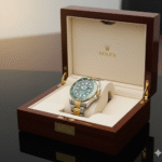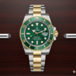 This luxury timepiece showcases the iconic design and unmatched craftsmanship of a premium Swiss dive watch. Featuring a striking green sunburst dial, the watch immediately captures attention with its rich color and refined finish. The dial is accented with luminous hour markers and hands, ensuring excellent readability in both daylight and low-light conditions. A date window positioned at 3 o’clock, enhanced with a magnifying lens, adds everyday practicality to its elegant design.